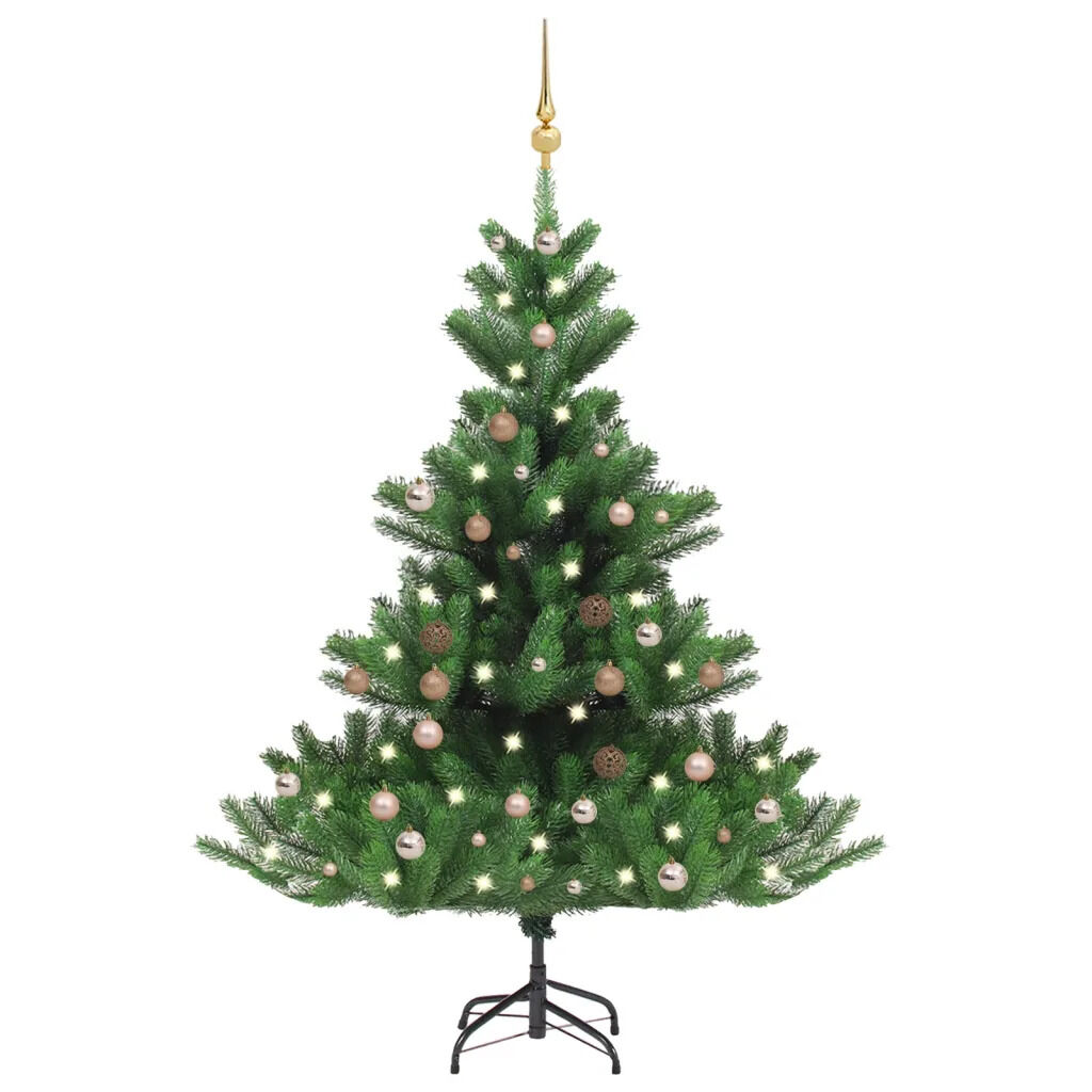 This Nordmann fir artificial Christmas tree forms the striking centrepiece of your Christmas decorations. The beautiful Christmas tree has a fully symmetrical shape. It is made of PE, which is very lifelike in its shape and appearance. All branches can be aligned which allows you to adjust the tree in the perfect form. The included steel stand provides your tree with optimal stability. Additionally, the Christmas tree can be used again every year, making it a very economical choice compared to a real tree. Featuring energy-efficient LED lights, it lights up beautifully and creates a cosy holiday atmosphere. What's more, decorated with the beautiful peak and balls, this Xmas tree will be eye-catching in your home. The large branches of this Xmas tree will fall automatically after installation, and there's no need to adjust it manually.