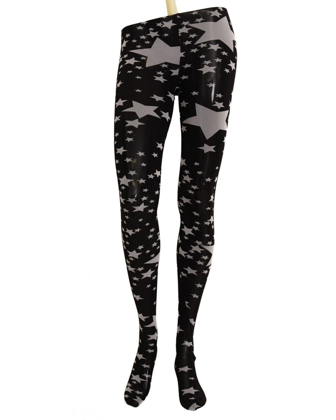 Nylon Micro Mesh Tights with All-Over Stars Print M Women