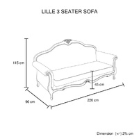 Our Lille sofa proudly boasts royal Chester Ford design and premium upholstered cover. Its medium high backrest has Oak wood frame and there is floral embellishment on top of the backrest. Lille range has set of one, two and three seater sofas.