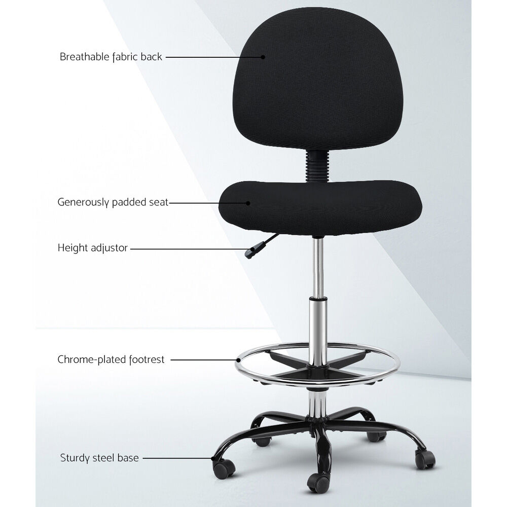 $84.59Stylish. Sleek. And practical. Our Drafting Chair is just perfect for drafting work or even other artistic pursuits with its very functional and timeless design. The thick padded seat ensures adequate comfort while the highly breathable fabric upholstery allows for long hours use with any hassles and also remains soft to the touch. The adjustable chrome footrest that encircles the base of the chair is a real handy too for getting the most comfortable perch for your feet. Better still, the chair is 360 degrees rotatable for facing in any direction. Not least, the dual-wheel castors enable fast and easy mobility every time.
