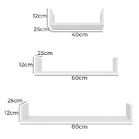 $94.93This three piece set features premium components complimented with Swiss Krono Boards to ensure it lasts the test of time. Available in classic white This product is quick and easy to install with video installation instructions provided. If you're looking for a subtle decorative feature for your walls at home or in the office then this is the product for you. Fully Assembled this unit is 118 x 400/600/800 W x 250D