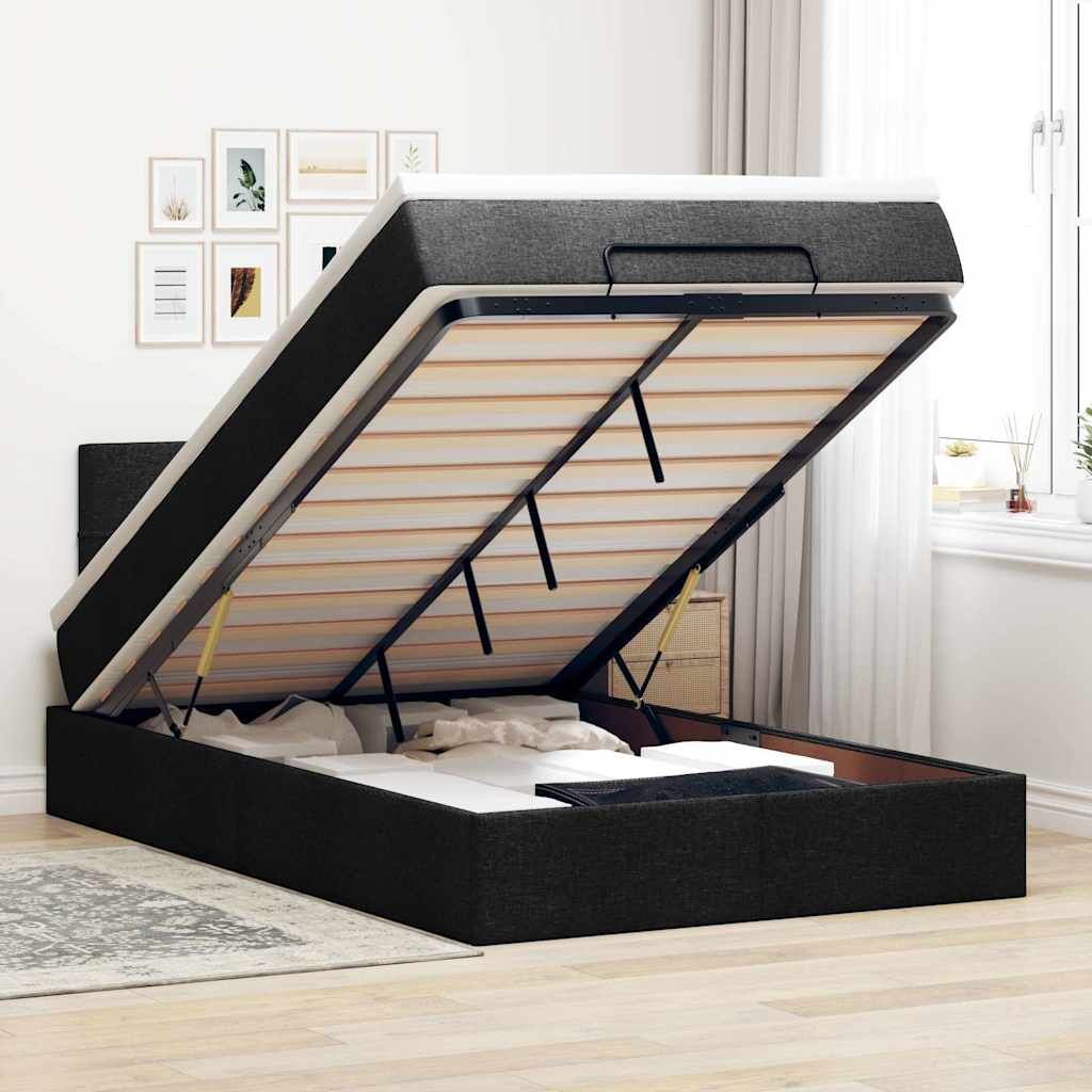 Use this ottoman bed with mattress to enjoy a restful night's sleep! It offers you both a storage solution and a comfortable sleep experience. Soft and durable material: Polyester fabric offers a combination of softness, breathability, and durability, ensuring you experience ultimate comfort and cosiness.Pocket spring mattress: This pocket sprung mattress has individual pocket springs that work independently to provide personalised support by reacting only to pressure in each area. This design prevents "roll-together" and reduces motion transfer compared to traditional open coil mattresses. Each pocket spring supports the body individually.Ample under-bed storage: Thanks to the hydraulic lift mechanism, the bed frame offers ample under-bed storage, maximising space without taking up extra floor area. With just a simple pull of the handle, the slat base lifts smoothly, allowing you to retrieve your items quickly and effortlessly.Comfortable mattress topper: This mattress topper enhances support and comfort with its soft, breathable surface while extending the life span of your mattress. Its removable cover allows for easy washing, making maintenance a breeze. Good to know:For hygiene reasons, the mattress cannot be returned if the packaging is removed or opened.