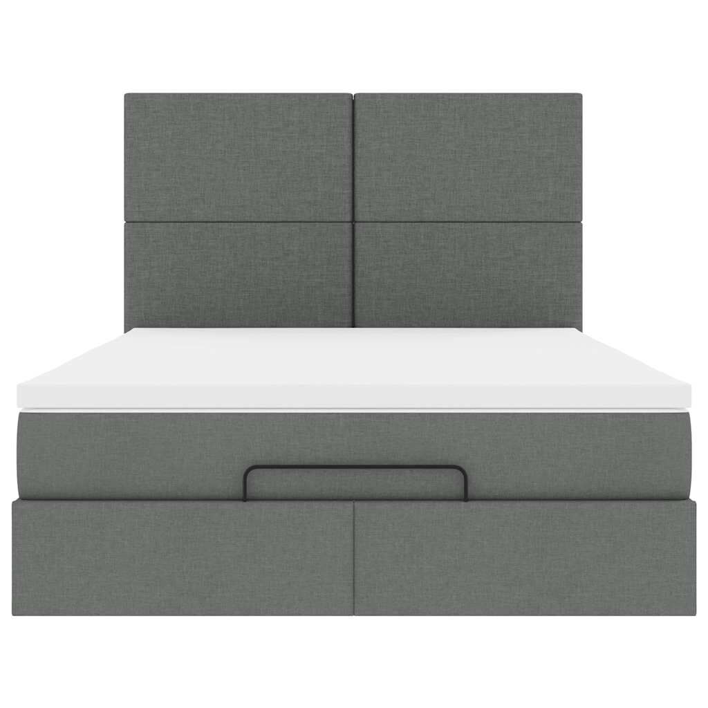 Ottoman Bed with Mattress Dark Grey Double Fabric