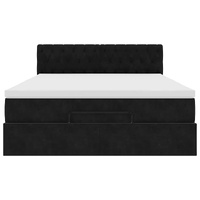 Use this ottoman bed with mattress to enjoy a restful night's sleep! It offers you both a storage solution and a comfortable sleep experience. Soft and comfortable material: Velvet fabric features a soft and smooth surface that delivers a delightful sensation against the skin, bringing you warmth and ultimate comfort.Pocket spring mattress: This pocket sprung mattress has individual pocket springs that work independently to provide personalised support by reacting only to pressure in each area. This design prevents "roll-together" and reduces motion transfer compared to traditional open coil mattresses. Each pocket spring supports the body individually.Ample under-bed storage: Thanks to the hydraulic lift mechanism, the bed frame offers ample under-bed storage, maximising space without taking up extra floor area. With just a simple pull of the handle, the slat base lifts smoothly, allowing you to retrieve your items quickly and effortlessly.Comfortable mattress topper: This mattress topper enhances support and comfort with its soft, breathable surface while extending the life span of your mattress. Its removable cover allows for easy washing, making maintenance a breeze.LED Lights for a pleasant ambience: This bed features LED lights that can be easily adjusted to create a personalised light show. You can customise the modes, colours, and brightness to enhance the ambience of your interior space. Good to know:The product has a USB connector that requires a certified 5V USB power source (not included).For hygiene reasons, the mattress cannot be returned if the packaging is removed or opened.Only the part with a scissors symbol can be cut and only the part with the USB will continue functioning as before.
