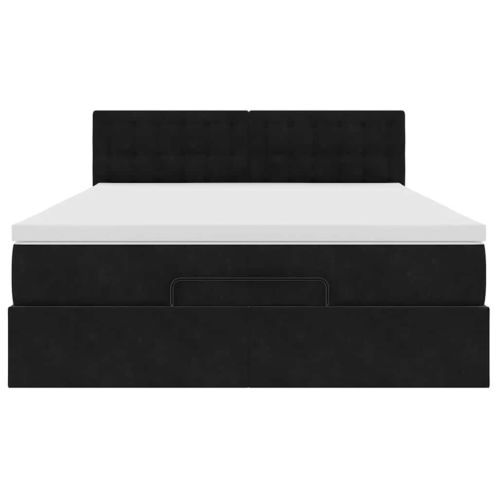 Use this ottoman bed with mattress to enjoy a restful night's sleep! It offers you both a storage solution and a comfortable sleep experience. Soft and comfortable material: Velvet fabric features a soft and smooth surface that delivers a delightful sensation against the skin, bringing you warmth and ultimate comfort.Pocket spring mattress: This pocket sprung mattress has individual pocket springs that work independently to provide personalised support by reacting only to pressure in each area. This design prevents "roll-together" and reduces motion transfer compared to traditional open coil mattresses. Each pocket spring supports the body individually.Ample under-bed storage: Thanks to the hydraulic lift mechanism, the bed frame offers ample under-bed storage, maximising space without taking up extra floor area. With just a simple pull of the handle, the slat base lifts smoothly, allowing you to retrieve your items quickly and effortlessly.Comfortable mattress topper: This mattress topper enhances support and comfort with its soft, breathable surface while extending the life span of your mattress. Its removable cover allows for easy washing, making maintenance a breeze.LED Lights for a pleasant ambience: This bed features LED lights that can be easily adjusted to create a personalised light show. You can customise the modes, colours, and brightness to enhance the ambience of your interior space. Good to know:The product has a USB connector that requires a certified 5V USB power source (not included).For hygiene reasons, the mattress cannot be returned if the packaging is removed or opened.Only the part with a scissors symbol can be cut and only the part with the USB will continue functioning as before.