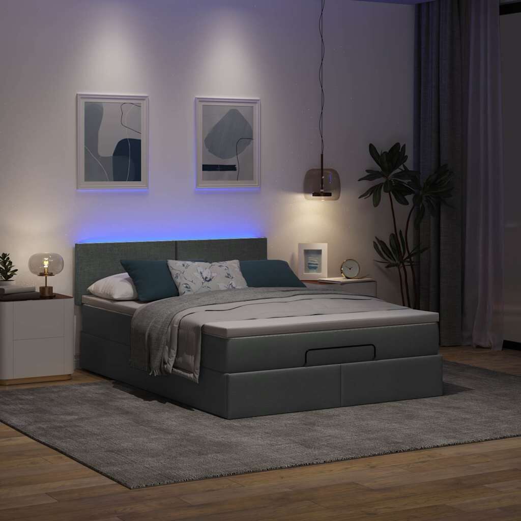 Use this ottoman bed with mattress to enjoy a restful night's sleep! It offers you both a storage solution and a comfortable sleep experience. Soft and durable material: Polyester fabric offers a combination of softness, breathability, and durability, ensuring you experience ultimate comfort and cosiness.Pocket spring mattress: This pocket sprung mattress has individual pocket springs that work independently to provide personalised support by reacting only to pressure in each area. This design prevents "roll-together" and reduces motion transfer compared to traditional open coil mattresses. Each pocket spring supports the body individually.Ample under-bed storage: Thanks to the hydraulic lift mechanism, the bed frame offers ample under-bed storage, maximising space without taking up extra floor area. With just a simple pull of the handle, the slat base lifts smoothly, allowing you to retrieve your items quickly and effortlessly.Comfortable mattress topper: This mattress topper enhances support and comfort with its soft, breathable surface while extending the life span of your mattress. Its removable cover allows for easy washing, making maintenance a breeze.LED Lights for a pleasant ambience: This bed features LED lights that can be easily adjusted to create a personalised light show. You can customise the modes, colours, and brightness to enhance the ambience of your interior space. Good to know:The product has a USB connector that requires a certified 5V USB power source (not included).For hygiene reasons, the mattress cannot be returned if the packaging is removed or opened.Only the part with a scissors symbol can be cut and only the part with the USB will continue functioning as before.
