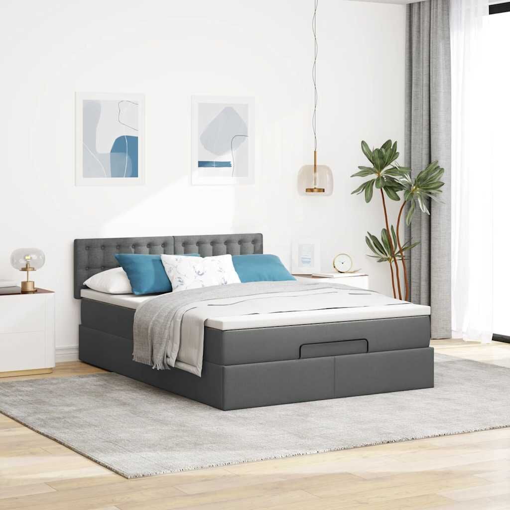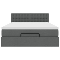 Ottoman Bed with Mattress & LEDs Dark Grey Double Fabric