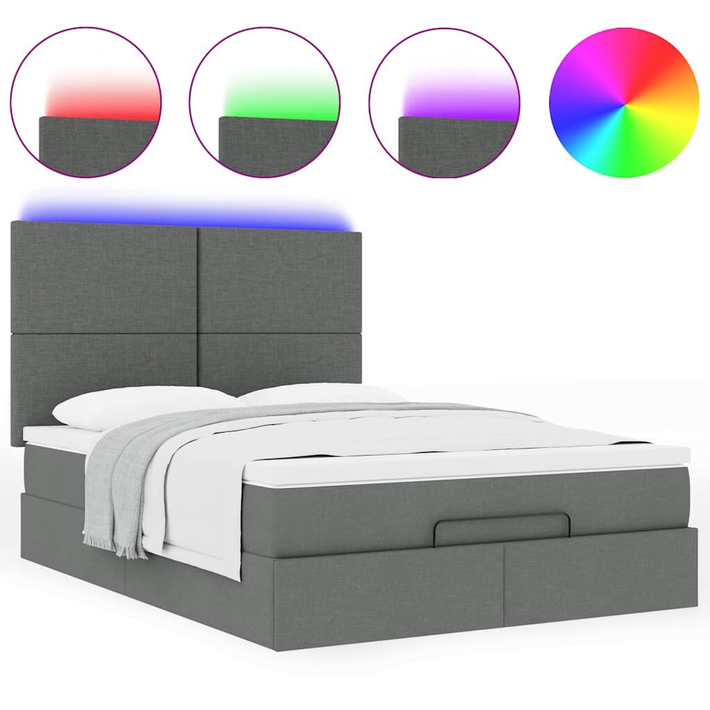 Use this ottoman bed with mattress to enjoy a restful night's sleep! It offers you both a storage solution and a comfortable sleep experience. Soft and durable material: Polyester fabric offers a combination of softness, breathability, and durability, ensuring you experience ultimate comfort and cosiness.Pocket spring mattress: This pocket sprung mattress has individual pocket springs that work independently to provide personalised support by reacting only to pressure in each area. This design prevents "roll-together" and reduces motion transfer compared to traditional open coil mattresses. Each pocket spring supports the body individually.Ample under-bed storage: Thanks to the hydraulic lift mechanism, the bed frame offers ample under-bed storage, maximising space without taking up extra floor area. With just a simple pull of the handle, the slat base lifts smoothly, allowing you to retrieve your items quickly and effortlessly.Comfortable mattress topper: This mattress topper enhances support and comfort with its soft, breathable surface while extending the life span of your mattress. Its removable cover allows for easy washing, making maintenance a breeze.LED Lights for a pleasant ambience: This bed features LED lights that can be easily adjusted to create a personalised light show. You can customise the modes, colours, and brightness to enhance the ambience of your interior space. Good to know:The product has a USB connector that requires a certified 5V USB power source (not included).For hygiene reasons, the mattress cannot be returned if the packaging is removed or opened.Only the part with a scissors symbol can be cut and only the part with the USB will continue functioning as before.