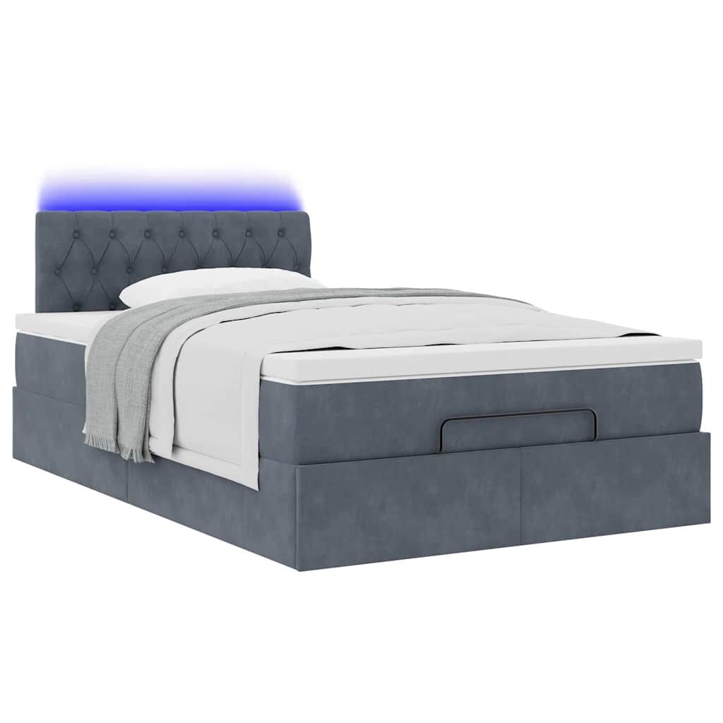 Use this ottoman bed with mattress to enjoy a restful night's sleep! It offers you both a storage solution and a comfortable sleep experience. Soft and comfortable material: Velvet fabric features a soft and smooth surface that delivers a delightful sensation against the skin, bringing you warmth and ultimate comfort.Pocket spring mattress: This pocket sprung mattress has individual pocket springs that work independently to provide personalised support by reacting only to pressure in each area. This design prevents "roll-together" and reduces motion transfer compared to traditional open coil mattresses. Each pocket spring supports the body individually.Ample under-bed storage: Thanks to the hydraulic lift mechanism, the bed frame offers ample under-bed storage, maximising space without taking up extra floor area. With just a simple pull of the handle, the slat base lifts smoothly, allowing you to retrieve your items quickly and effortlessly.Comfortable mattress topper: This mattress topper enhances support and comfort with its soft, breathable surface while extending the life span of your mattress. Its removable cover allows for easy washing, making maintenance a breeze.LED Lights for a pleasant ambience: This bed features LED lights that can be easily adjusted to create a personalised light show. You can customise the modes, colours, and brightness to enhance the ambience of your interior space. Good to know:The product has a USB connector that requires a certified 5V USB power source (not included).For hygiene reasons, the mattress cannot be returned if the packaging is removed or opened.Only the part with a scissors symbol can be cut and only the part with the USB will continue functioning as before.