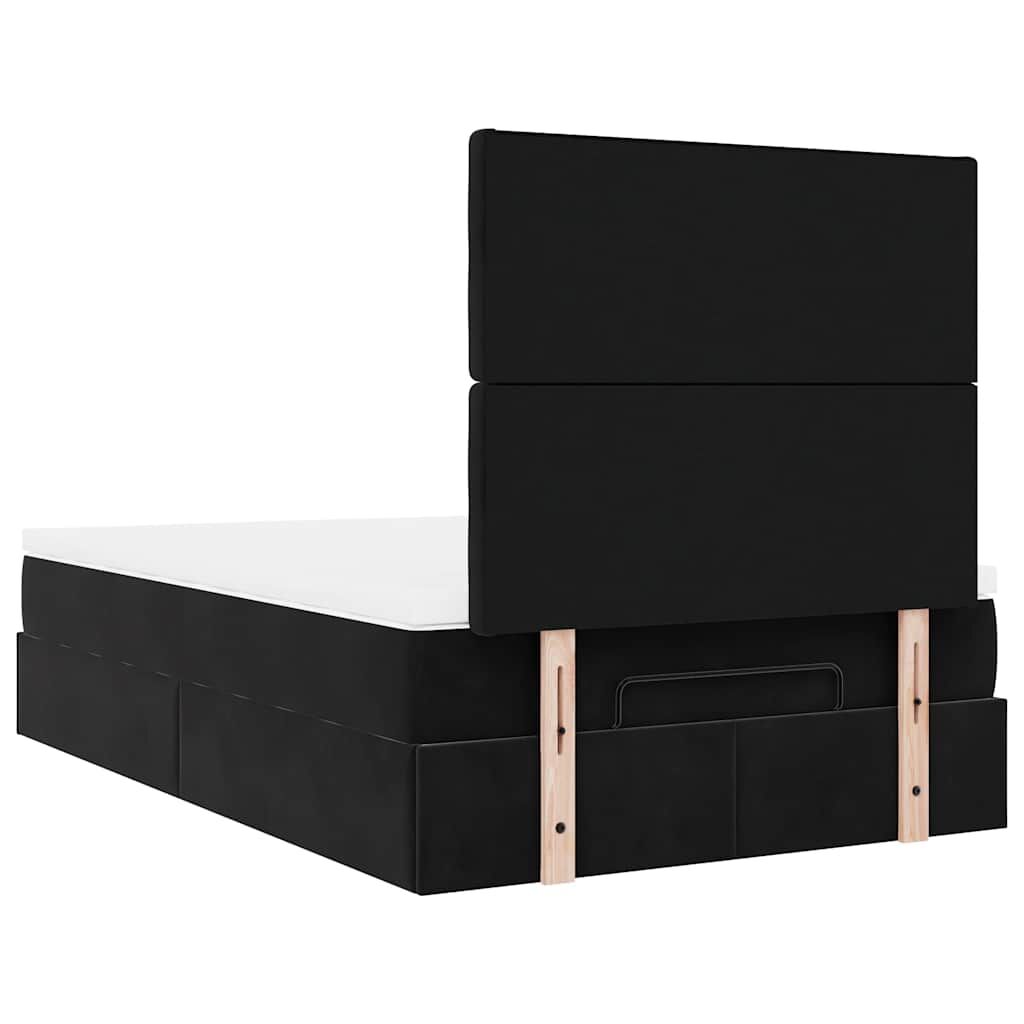 Ottoman Bed with Mattresses & LEDs Black King Single Velvet