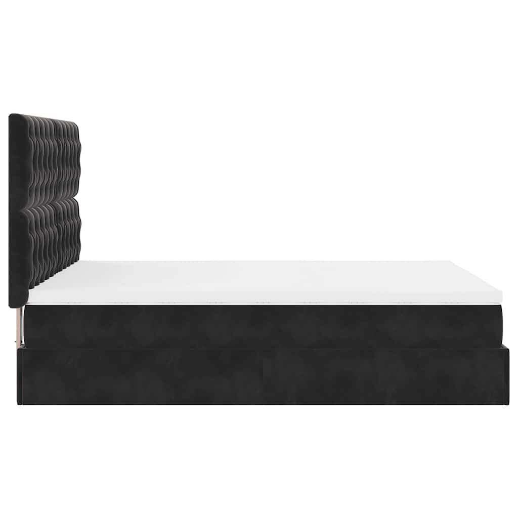 Use this ottoman bed with mattresses to enjoy a restful night's sleep! It offers you both a storage solution and a comfortable sleep experience.Soft and comfortable material: Velvet fabric features a soft and smooth surface that delivers a delightful sensation against the skin, bringing you warmth and ultimate comfort.Pocket spring mattress: This pocket sprung mattress has individual pocket springs that work independently to provide personalised support by reacting only to pressure in each area. This design prevents "roll-together" and reduces motion transfer compared to traditional open coil mattresses. Each pocket spring supports the body individually.Ample under-bed storage: Thanks to the hydraulic lift mechanism, the bed frame offers ample under-bed storage, maximising space without taking up extra floor area. With just a simple pull of the handle, the slat base lifts smoothly, allowing you to retrieve your items quickly and effortlessly.Comfortable mattress topper: This mattress topper enhances support and comfort with its soft, breathable surface while extending the life span of your mattress. Its removable cover allows for easy washing, making maintenance a breeze.LED Lights for a pleasant ambience: This bed features LED lights that can be easily adjusted to create a personalised light show. You can customise the modes, colours, and brightness to enhance the ambience of your interior space. Good to know:The product has a USB connector that requires a certified 5V USB power source (not included).For hygiene reasons, the mattress cannot be returned if the packaging is removed or opened.Only the part with a scissors symbol can be cut and only the part with the USB will continue functioning as before.