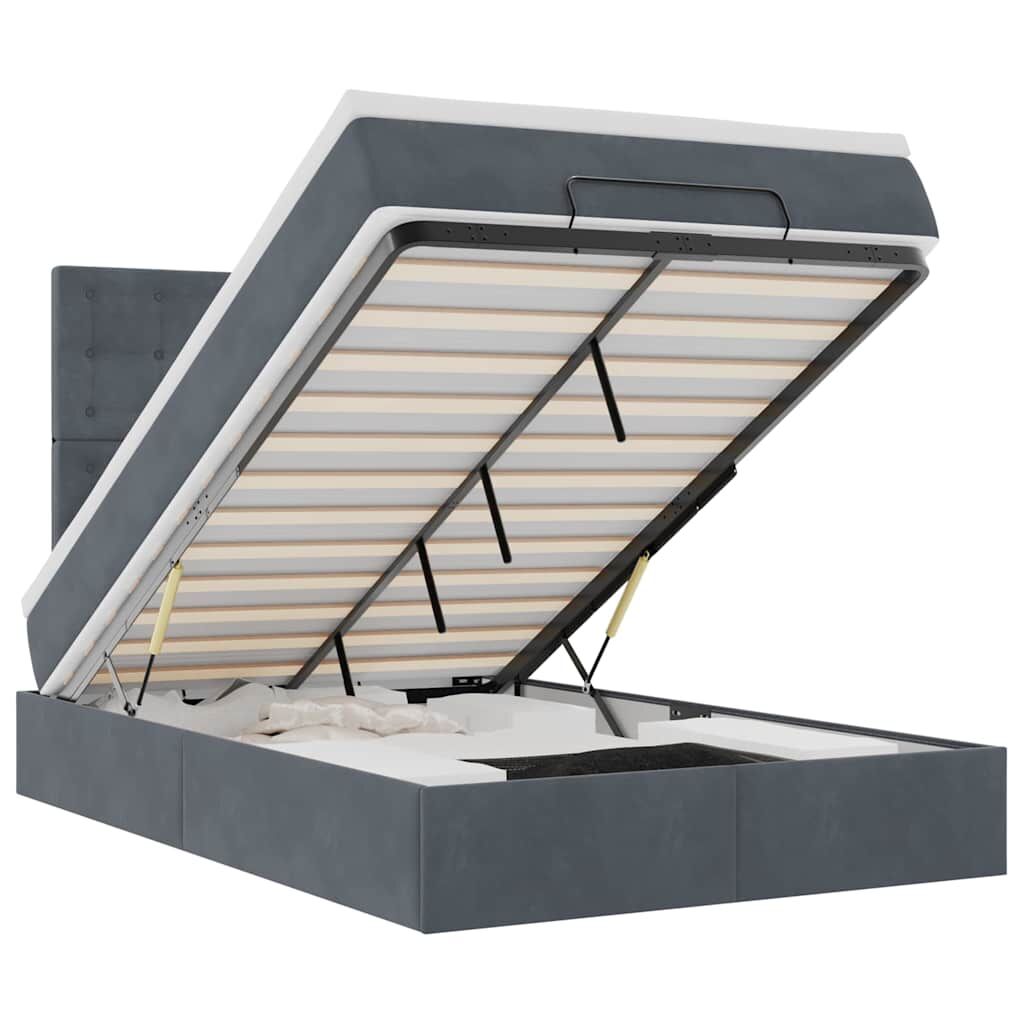 Use this ottoman bed with mattresses to enjoy a restful night's sleep! It offers you both a storage solution and a comfortable sleep experience.Soft and comfortable material: Velvet fabric features a soft and smooth surface that delivers a delightful sensation against the skin, bringing you warmth and ultimate comfort.Pocket spring mattress: This pocket sprung mattress has individual pocket springs that work independently to provide personalised support by reacting only to pressure in each area. This design prevents "roll-together" and reduces motion transfer compared to traditional open coil mattresses. Each pocket spring supports the body individually.Ample under-bed storage: Thanks to the hydraulic lift mechanism, the bed frame offers ample under-bed storage, maximising space without taking up extra floor area. With just a simple pull of the handle, the slat base lifts smoothly, allowing you to retrieve your items quickly and effortlessly.Comfortable mattress topper: This mattress topper enhances support and comfort with its soft, breathable surface while extending the life span of your mattress. Its removable cover allows for easy washing, making maintenance a breeze.LED Lights for a pleasant ambience: This bed features LED lights that can be easily adjusted to create a personalised light show. You can customise the modes, colours, and brightness to enhance the ambience of your interior space. Good to know:The product has a USB connector that requires a certified 5V USB power source (not included).For hygiene reasons, the mattress cannot be returned if the packaging is removed or opened.Only the part with a scissors symbol can be cut and only the part with the USB will continue functioning as before.