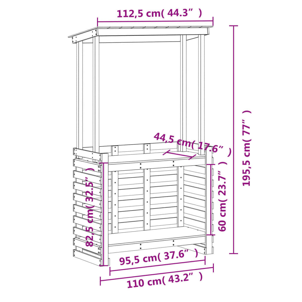 Take a sip of your favourite wine or enjoy a nice meal with your family or friends around this outdoor bar table. Solid douglas wood: The outdoor bar table is made of solid douglas wood for sturdiness and stability. Solid douglas wood is a highly durable wood that works well for outdoors. Douglas wood is also strong enough to work with minimum care, even under the influence of the weather.Practical top: The outdoor pub table is designed with a roof which offers shade and protection from direct sunlight.Storage shelves: The outdoor high table has 2 shelves for keeping food and drinks within easy reach.Wide applications: The garden bar table, with its remarkable design, creates a pleasant overall appearance that integrates effortlessly into any environment. Good to know:To make sure your outdoor furniture stays beautiful, we recommend protecting it with a waterproof cover.