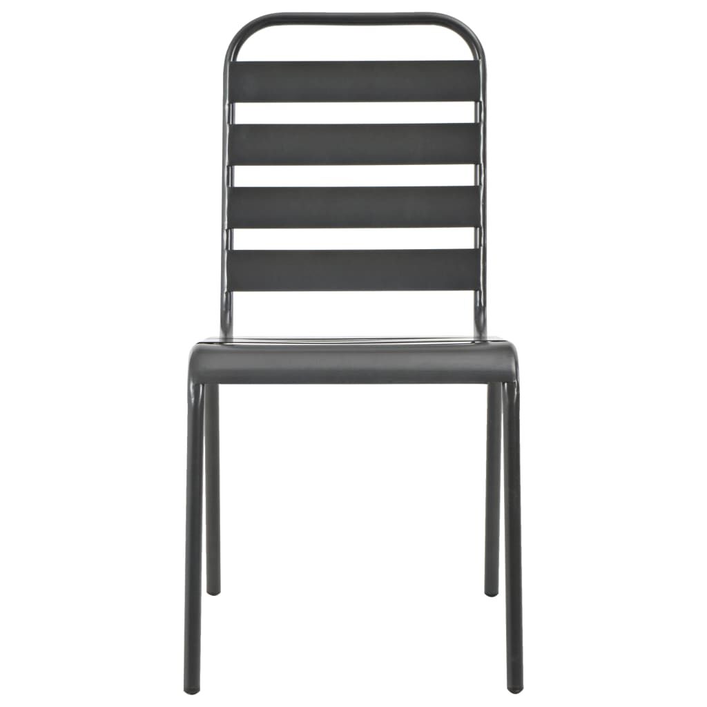 This stylish set of 4 outdoor chairs add a touch of contemporary style to your patio, garden or dining room. When you invite guests over, they will certainly marvel at these modern chairs. The high-quality garden chairs are made of sturdy steel that has been e-coated and then powder-coated. The e-coating (electrophoretic coating) is applied to make chairs resistant to rust, weather, and long-term outdoor use, while the powder coating helps to enhance the durability. The dining chairs can be stacked to save space when not in use.