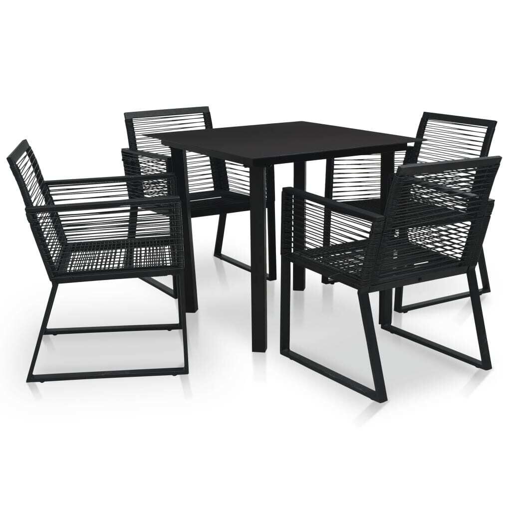 $309.25This outdoor dining set contains 1 table with glass top and 4 armchairs. Our dining furniture set with stylish design and a durable steel frame makes it a perfect choice for your outdoor living space. The simplistic elegance of this dining set will make your everyday dinners special. As the furniture set is made of PVC rattan, it is weather-resistant. Additionally, this garden dining set features a powder-coated steel frame, which makes the table and chairs stable and durable.