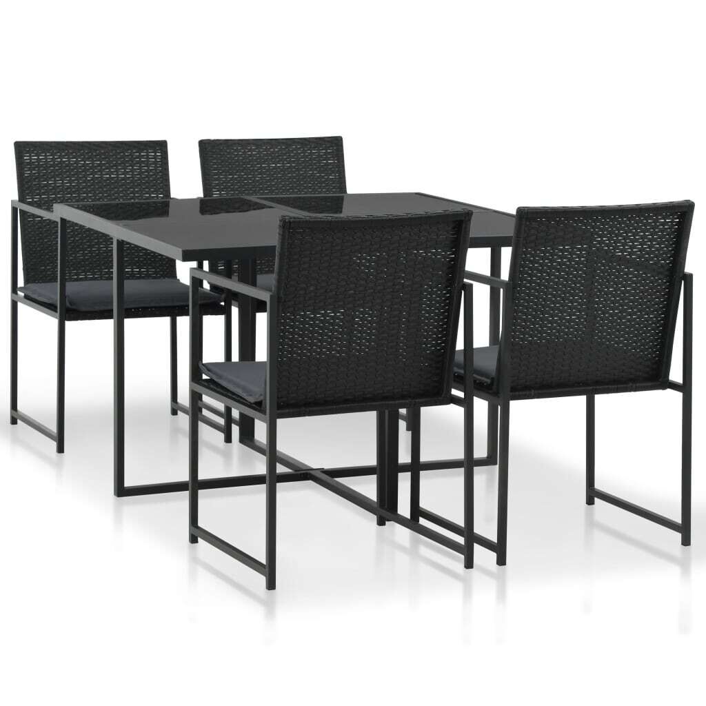 $321.47This garden furniture set will be the eye-catcher in your garden, on your balcony or patio. Thanks to the water-resistant PE rattan, the seat area and backrest of chairs are easy to clean and durable. The powder-coated steel frames also make the set of furniture strong and stable. It comes with a stylish table to match our elegant chairs. This garden set is easy to assemble. Delivery includes 1 table, 4 chairs and 4 seat cushions. Note: We recommend covering the set during rain, snow and frost for its best service to last.