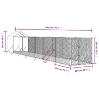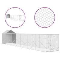 This practical and spacious outdoor dog kennel with roof is a perfect choice as an outdoor enclosure for keeping your animals safe and comfortable. Versatile kennel: The dog kennel features a spacious space that allows your dogs, chickens, rabbits, ducks, and other small animals to play, exercise, train, or just rest.Sturdy construction: Made of heavy-duty galvanised steel, the dog cage is sturdy and durable.Lockable door: The outside dog kennel has a lockable door to prevent your small animals from predators and other hazards while outdoors.Protective roof and sidewalls: Made of polyethylene, the roof and sidewalls are water-resistant and UV-resistant, providing protection from sun, rain, snow, as well as other weather conditions.Mesh design: The mesh design of the dog run kennel ensures a dry and ventilative living condition.