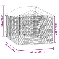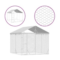 This practical and spacious outdoor dog kennel with roof is a perfect choice as an outdoor enclosure for keeping your animals safe and comfortable. Versatile kennel: The dog kennel features a spacious space that allows your dogs, chickens, rabbits, ducks, and other small animals to play, exercise, train, or just rest.Sturdy construction: Made of heavy-duty galvanised steel, the dog cage is sturdy and durable.Lockable door: The outside dog kennel has a lockable door to prevent your small animals from predators and other hazards while outdoors.Protective roof: Made of polyethylene, the roof is water-resistant and UV-resistant, providing protection from sun, rain, snow, as well as other weather conditions.Mesh design: The mesh design of the dog run kennel ensures a dry and ventilative living condition.