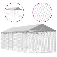 This practical and spacious outdoor dog kennel with roof is a perfect choice as an outdoor enclosure for keeping your animals safe and comfortable. Versatile kennel: The dog kennel features a spacious space that allows your dogs, chickens, rabbits, ducks, and other small animals to play, exercise, train, or just rest.Sturdy construction: Made of heavy-duty galvanised steel, the dog cage is sturdy and durable.Lockable door: The outside dog kennel has a lockable door to prevent your small animals from predators and other hazards while outdoors.Protective roof: Made of polyethylene, the roof is water-resistant and UV-resistant, providing protection from sun, rain, snow, as well as other weather conditions.Mesh design: The mesh design of the dog run kennel ensures a dry and ventilative living condition.