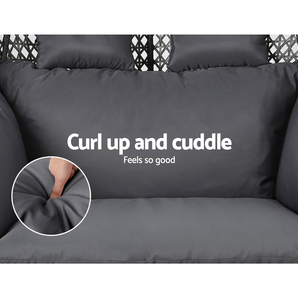 $642.01Otherwise known as the hanging egg chair, the Gardeon Hanging Pod Chair is the epitome of ultimate relaxation. Featuring 100% hand-woven UV-resistant wicker, the pod is beautifully handcrafted to give it a cool, exotic appeal that will suit any balcony, poolside, or indoor living space. It has ample space for two with a weight capacity of up to 240kg. Two supporting poles ensure added stability and strength, while the powder-coated steel finish ensures that corrosion will never be an issue. Best of all, the soft, inviting cushion offers plush comfort for day dreamers and leisure seekers alike. Hang cool people! Get your Gardeon Hanging Pod Chair just in time for summer!