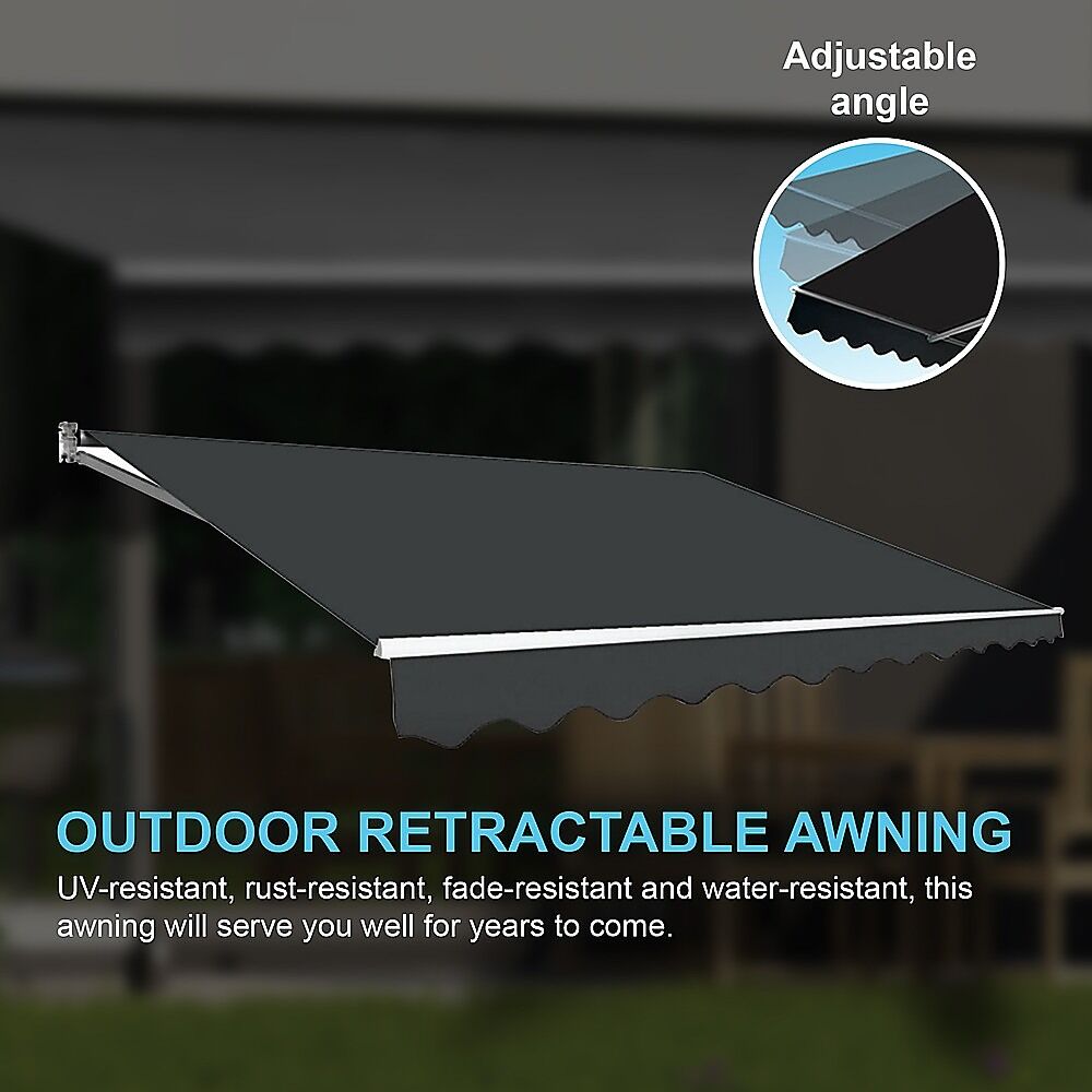 $405.13With summer just around the corner, it's time to start preparing your home to handle scorching heat and the sun's incessant rays. Bariloche's 3 x 2.5m folding arm outdoor retractable awning is just the thing to protect you from the hot summer sun. Since it folds up easily with only the turn of a hand crank when you don't need its protection, you can retract it when you want more sunshine. Wall brackets make for easy installation, yet we do recommend you use a professional installer to make sure the installation is done right.