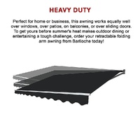$683.37With summer just around the corner, it's time to start preparing your home to handle scorching heat and the sun's incessant rays. Bariloche's 5.0 m x 3.0 m folding arm outdoor retractable awning is just the thing to protect you from the hot summer sun. Since it folds up easily with only the turn of a hand crank when you don't need its protection, you can retract it when you want more sunshine. Wall brackets make for easy installation, yet we do recommend you use a professional installer to make sure the installation is done right.