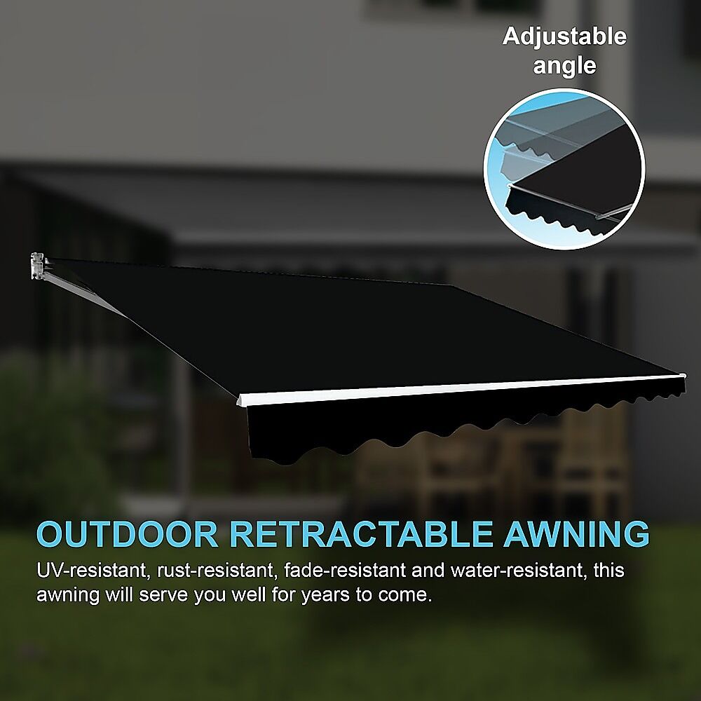 Designed to last, this awning features a rugged aluminium frame, powder-coated for extra protection. UV-resistant, rust-resistant, fade-resistant and water-resistant, this awning will serve you well for years to come. The shade itself is made from 300-gsm high-quality 100 per cent polyester that stands up to whatever Mother Nature throws at it, while its neutral black profile adds kerb appeal to your home.