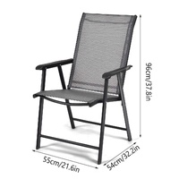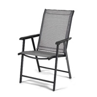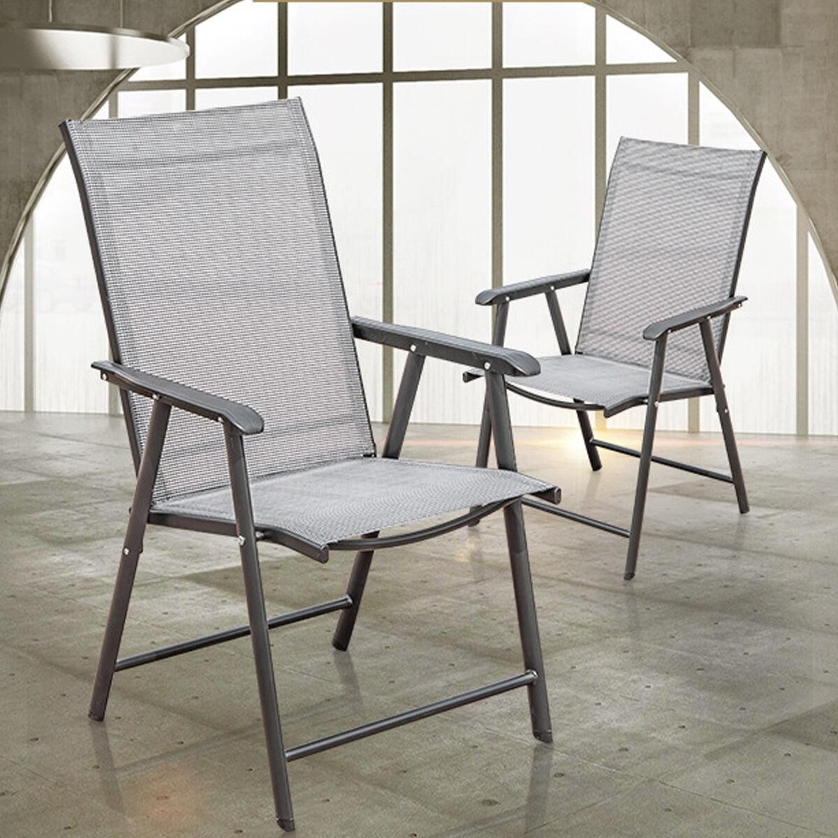 Relax in style and comfort with this folding metal chair, perfect for both indoor and outdoor use. Featuring an ergonomic design, it provides excellent lumbar support with its curved backrest and armrests. The breathable grey mesh fabric ensures comfort even on hot days, while the sturdy steel frame guarantees durability and stability. This portable chair easily folds flat for compact storage and effortless transport, making it ideal for outdoor activities, balconies, patios, or extra seating at home.