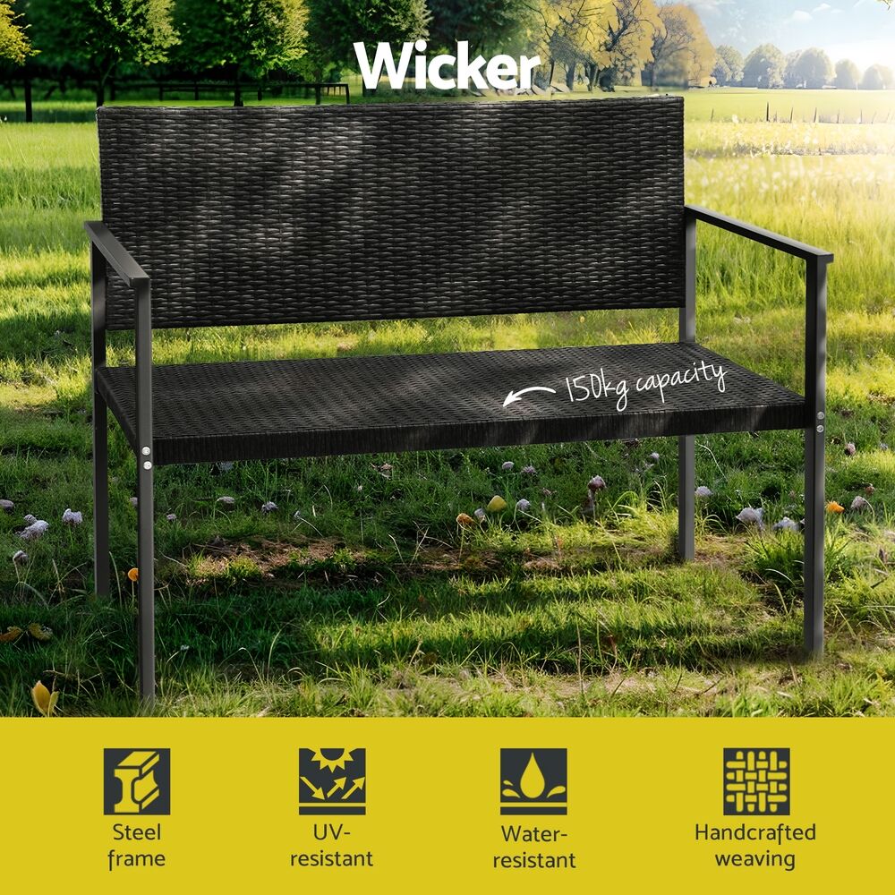 $103.39Enjoy a peaceful afternoon in the backyard with a Gardeon 2-seater Garden Bench. This timeless garden bench is the perfect addition to your outdoor dining area thanks to its powder-coated steel frame and sturdy woven PE wicker. The chair is strong, sturdy and weather, insect and rot resistant, so you know it will be there come rain or shine. The woven rattan seat is not only stylish but comfortable and allows for better ventilation. The bench has a weight capacity of 150kg, and with its smooth armrests and wide legs, you're guaranteed a stable, comfortable seat. Use outdoors for a classic exterior look or use inside for a rustic touch to your décor What better way to spend spring than with company outdoors on your Gardeon 2-seater Garden Bench.