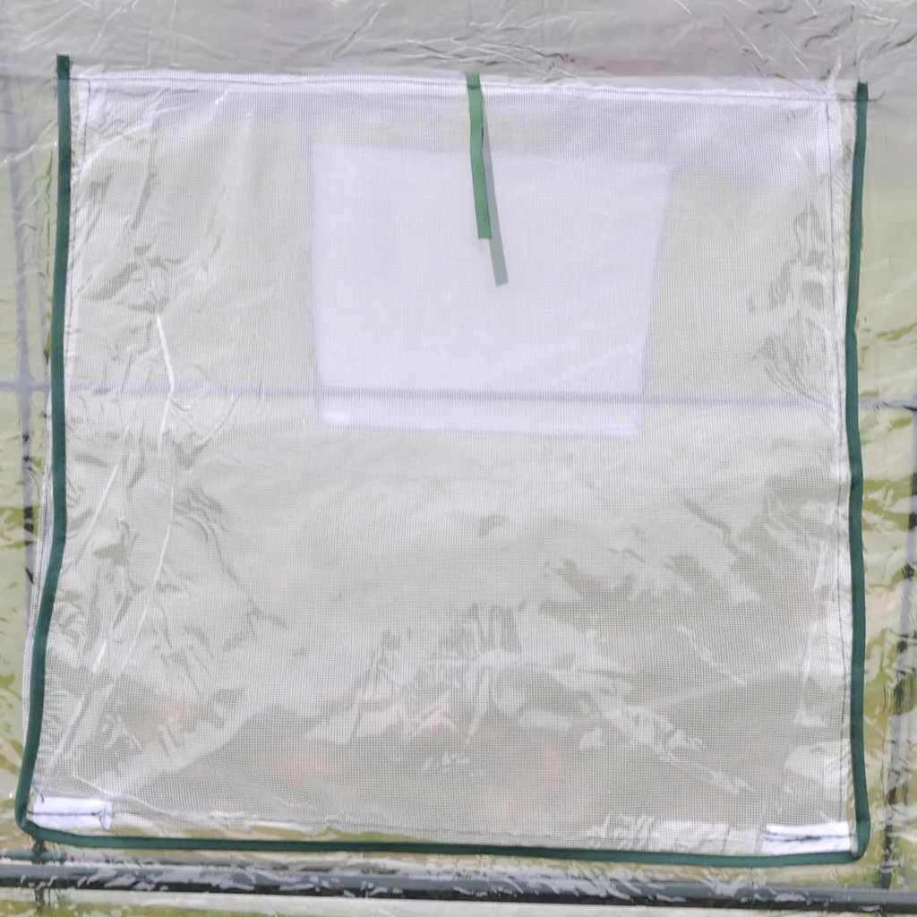This greenhouse is ideal for both the new and experienced gardeners. It can accommodate a considerable number of plants, and is great for seeding and protecting your plants from the cold weather. The greenhouse has a transparent cover which allows sunlight to reach your plants and flowers. It is UV protected and safe from frost so that damage caused by weather is minimized. It is also tear-resistant, making it a great alternative to a traditional glass greenhouse. The powder-coated steel frame is sturdy and firm, yet is surprisingly light weight. There is a zipped front door for easy entry as well as air ventilation. Assembly is safe and easy. This greenhouse can be quickly fastened with the included rope. No special tool is required. Please note the roof of our greenhouse cannot withstand heavy snowfall.