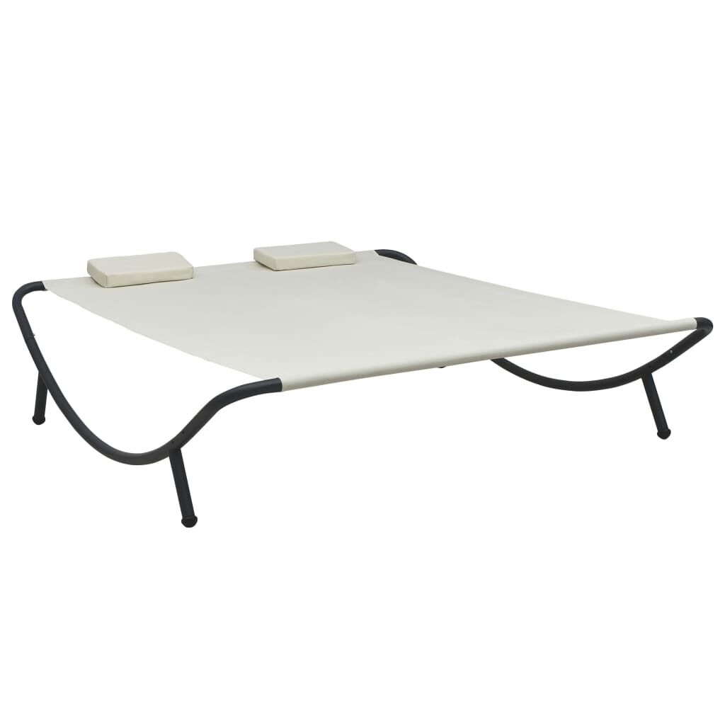 $103.39This lounge bed will be an ideal hideaway for relaxing and enjoying your leisure time in your garden, backyard, patio or beach. Made of weather-resistant oxford, the sun bed can be used outdoors for year round. The powder-coated steel frame brings super stability and ensures the sun bed a long service life and excellent durability. It is also delivered with two highly comfortable, thickly-padded pillows for the ultimate lying comfort. The low-maintenance polyester pillow covers can also be removed and washed. This sunbed is easy to assemble. Delivery includes a sunlounger with two pillows. Note: In order to extend the life of your outdoor furniture, we recommend you to clean it regularly and do not leave it outdoors without protection unnecessarily.Clean: Use a mild soap solutionStoring: If possible, store in a cool, dry place indoors. If the product is stored outdoors, protect it with a waterproof cover. Wipe and dry the excess water or snow from flat surfaces after a rain or snowfall. Allow sufficient air circulation to avoid moisture-related damage.