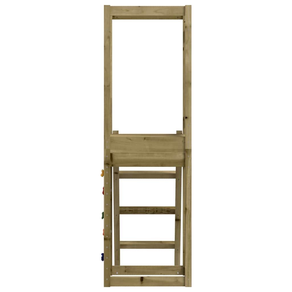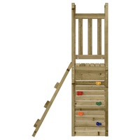 This wooden outdoor playset can offer many play options when it is combined with a slide, or a swing set and impresses your children with its great details. Impregnated wood: This playground is made of vacuum pressure impregnated pinewood. Solid pine wood is a beautiful natural material. Pine wood has a straight grain, and the knots give the material its signature, rustic look. Impregnation is a preservation process that is carried out by using autoclaves. The pressure-treatment increases resistance to decay and weather.Stable wooden frame: The wooden frame of the garden playhouse ensures sturdiness and stability.Practical design: This outdoor playground featuring a rockwall and ladder can be combined with a slide, or a swing set freely to create your own play area. Warning:Risk of serious head injury or death due to falls from equipment placed over hard surfaces. Risk of using helmets and other items that can wrap around a child's neck, become entangled or entrapped by the equipment, and lead to strangulation or death.Note:The product shall be anchored in order to reduce tipping hazards. The anchors are not included.Good to know:To make assembly as easy as possible, each product is delivered with a manual.