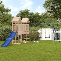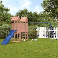 $778.31Do you want to give your children the freedom to play at home? This wooden outdoor playset transforms your backyard into a playground for imaginative adventures! Durable material: This playhouse is made of solid pine wood. Solid pine wood is a beautiful natural material. Pine wood has a straight grain, and the knots give the material its signature, rustic look. Sturdy and stable frame: The wooden frame ensures sturdiness and stability. In addition, the "A" shaped legs of the children's swing allow for balance. Multi-activity centres: The climbing frame features a 90 cm height platform and stands out with its wave slide, a double swing set as well as sandpits. Your little ones can also invite their friends to join the fun. Thoughtful design: The surrounding wooden railings are designed to ensure the safety of children during their happy play. Also, the wooden roof provides shade for your children on hot summer days. Endless fun: This fun-filled wooden outdoor playhouse is the perfect way for your child and their friends to enjoy entertainment, have more interactive time and make memories for you and your children! Warning:Only for domestic useOutdoor use Not suitable for children under 3 years Recommend user age: 3-8 years old Maximum per user weight: 45 kg Note:The product shall be anchored in order to reduce tipping hazards. The anchors are sold separately. Good to know:To make assembly as easy as possible, each product is delivered with a manual.