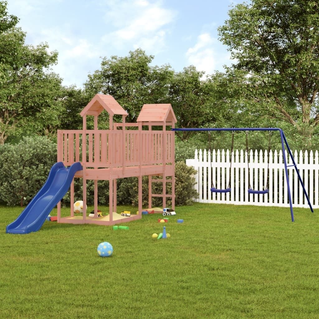 $925.89Do you want to give your children the freedom to play at home? This wooden outdoor playset transforms your backyard into a playground for imaginative adventures! Durable material: This playhouse is made of solid pine wood. Solid pine wood is a beautiful natural material. Pine wood has a straight grain, and the knots give the material its signature, rustic look. Sturdy and stable frame: The wooden frame ensures sturdiness and stability. In addition, the "A" shaped legs of the children's swing allow for balance. Multi-activity centres: The climbing frame features a 90 cm height platform and stands out with its wave slide, a double swing set as well as sandpits. Your little ones can also invite their friends to join the fun. Thoughtful design: The surrounding wooden railings are designed to ensure the safety of children during their happy play. Also, the wooden roof provides shade for your children on hot summer days. Endless fun: This fun-filled wooden outdoor playhouse is the perfect way for your child and their friends to enjoy entertainment, have more interactive time and make memories for you and your children! Warning:Only for domestic useOutdoor use Not suitable for children under 3 years Recommend user age: 3-8 years old Maximum per user weight: 45 kg Note:The product shall be anchored in order to reduce tipping hazards. The anchors are sold separately. Good to know:To make assembly as easy as possible, each product is delivered with a manual.