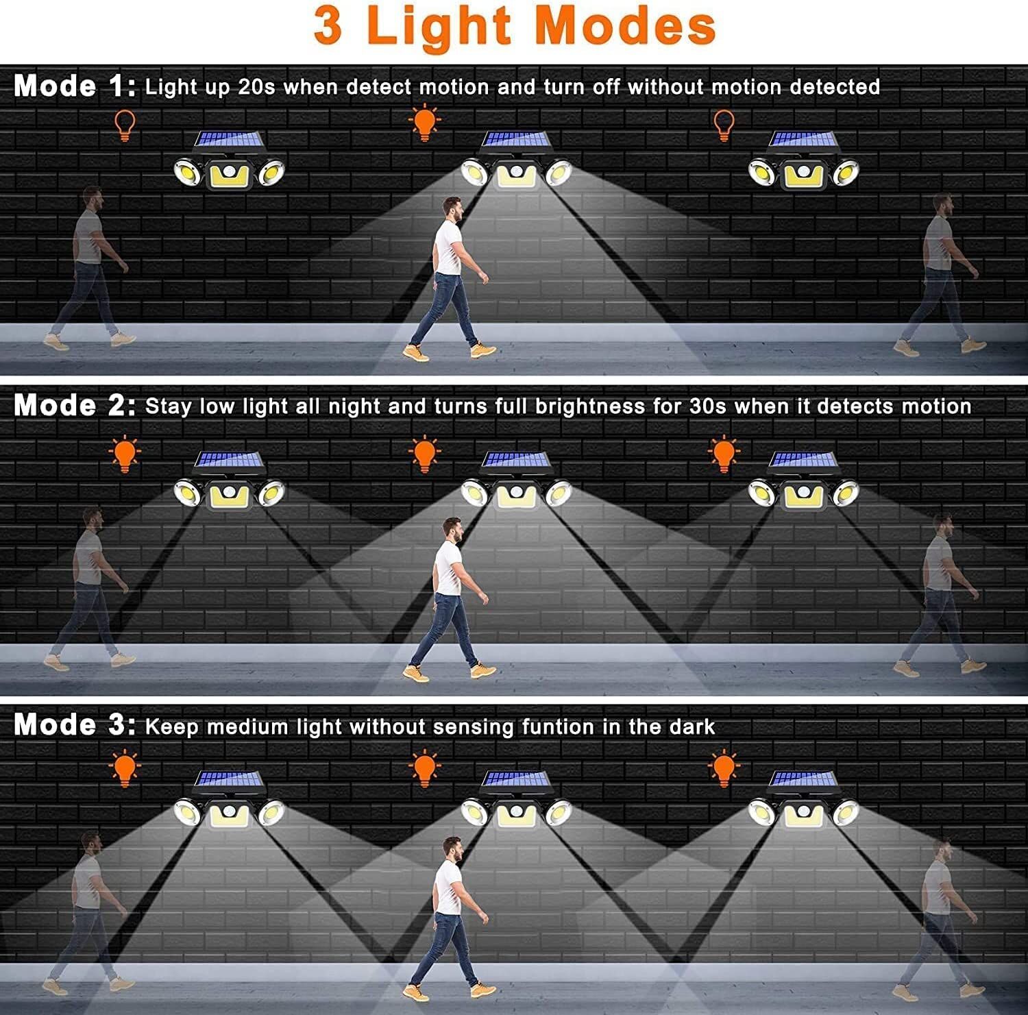 Outdoor Solar Lights with 3 Adjustable Head for Porch Garden Patio