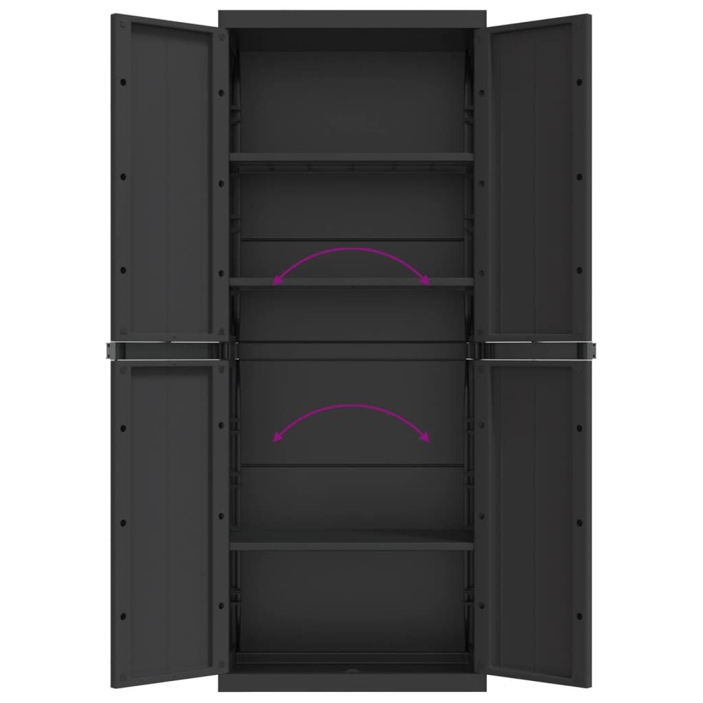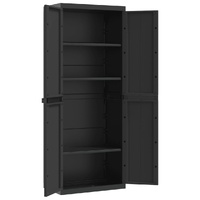 This outdoor storage cabinet is ideal for organising and storing household supplies, tools, or other items. Durable material: Polypropylene (PP) is a popular plastic that is also one of the most used materials in outdoor furniture. It's lightweight, tough, and resistant to impact. Also, this garden storage cupboard is weather-resistant and easy to maintain. Ample storage space: This utility cupboard provides ample storage space to help you sort out your garden supplies, tools, or other items. And the shelf can be adjusted to accommodate items of different sizes. Lockable: The garden storage furniture can be locked for added safety (lock not included). Compact design: With a compact design to make the most of limited space, this outdoor cupboard is perfect for gardens, balconies, and patios. Good to know:To make sure your outdoor furniture stays beautiful, we recommend protecting it with a waterproof cover. Warning: To prevent it being overturned, this product must be used with the provided wall attachment device.