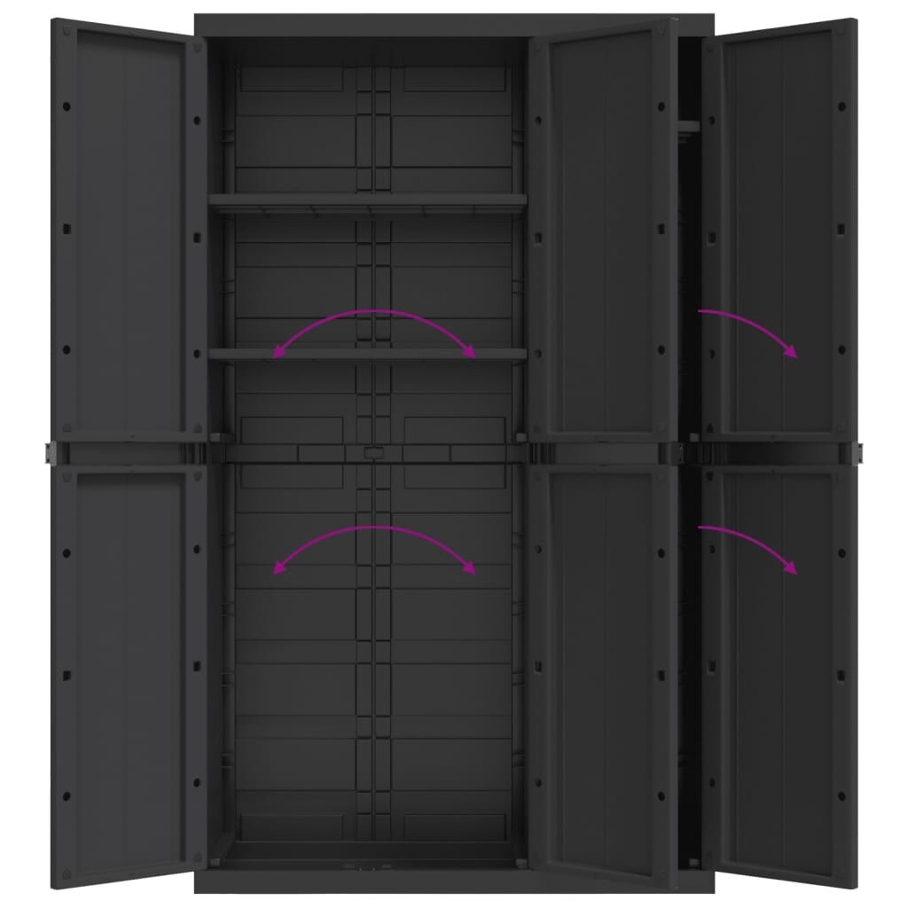 This outdoor storage cabinet is ideal for organising and storing household supplies, tools, or other items. Durable material: Polypropylene (PP) is a popular plastic that is also one of the most used materials in outdoor furniture. It's lightweight, tough, and resistant to impact. Also, this garden storage cupboard is weather-resistant and easy to maintain. Ample storage space: This utility cupboard provides ample storage space to help you sort out your garden supplies, tools, or other items. And the shelf can be adjusted to accommodate items of different sizes. Lockable: The garden storage furniture can be locked for added safety (lock not included). Compact design: With a compact design to make the most of limited space, this outdoor cupboard is perfect for gardens, balconies, and patios. Good to know:To make sure your outdoor furniture stays beautiful, we recommend protecting it with a waterproof cover. Warning: To prevent it being overturned, this product must be used with the provided wall attachment device.
