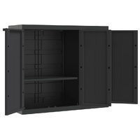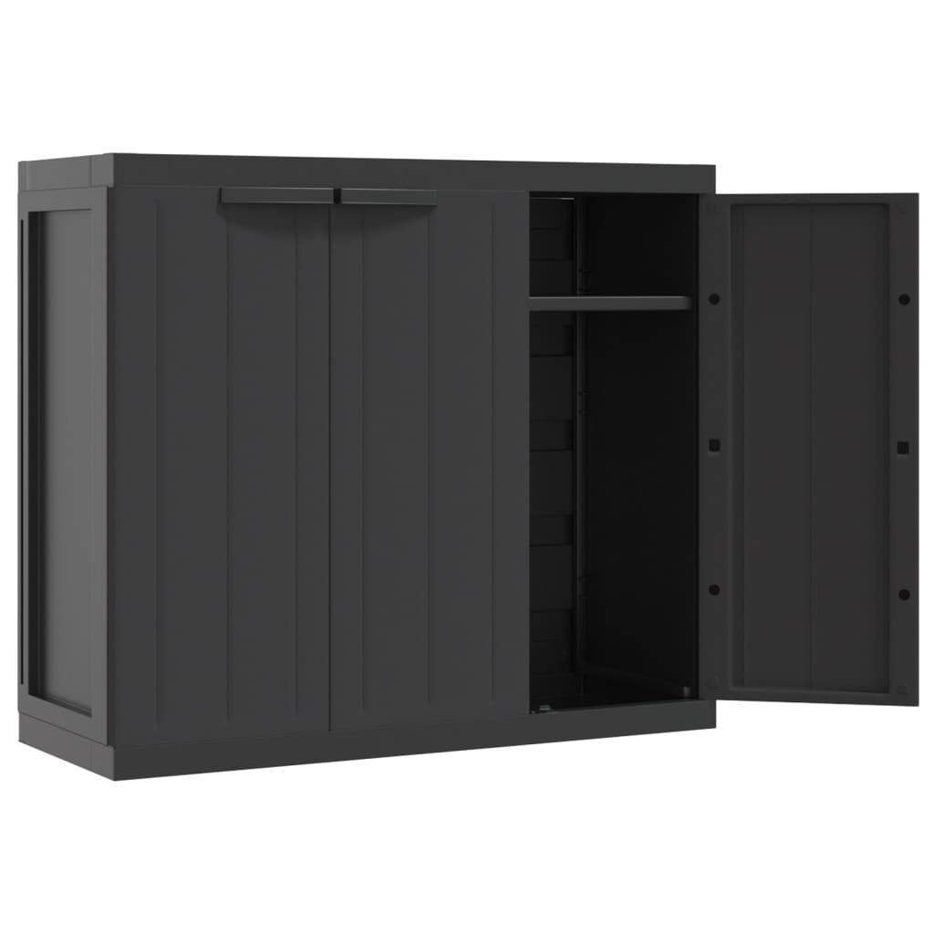 This outdoor storage cabinet is ideal for organising and storing household supplies, tools, or other items. Durable material: Polypropylene (PP) is a popular plastic that is also one of the most used materials in outdoor furniture. It's lightweight, tough, and resistant to impact. Also, this garden storage cupboard is weather-resistant and easy to maintain. Ample storage space: This utility cupboard provides ample storage space to help you sort out your garden supplies, tools, or other items. And the shelf can be adjusted to accommodate items of different sizes. Lockable: The garden storage furniture can be locked for added safety (lock not included). Compact design: With a compact design to make the most of limited space, this outdoor cupboard is perfect for gardens, balconies, and patios. Good to know:To make sure your outdoor furniture stays beautiful, we recommend protecting it with a waterproof cover. Warning: To prevent it being overturned, this product must be used with the provided wall attachment device.