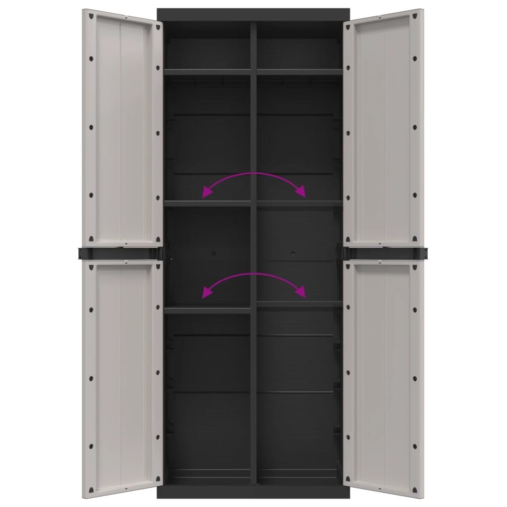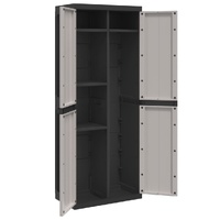 This outdoor storage cabinet is ideal for organising and storing household supplies, tools, or other items. Durable material: Polypropylene (PP) is a popular plastic that is also one of the most used materials in outdoor furniture. It's lightweight, tough, and resistant to impact. Also, this garden storage cupboard is weather-resistant and easy to maintain. Ample storage space: This utility cupboard provides ample storage space to help you sort out your garden supplies, tools, or other items. And the shelf can be adjusted to accommodate items of different sizes. Lockable: The garden storage furniture can be locked for added safety (lock not included). Compact design: With a compact design to make the most of limited space, this outdoor cupboard is perfect for gardens, balconies, and patios. Good to know:To make sure your outdoor furniture stays beautiful, we recommend protecting it with a waterproof cover. Warning: To prevent it being overturned, this product must be used with the provided wall attachment device.