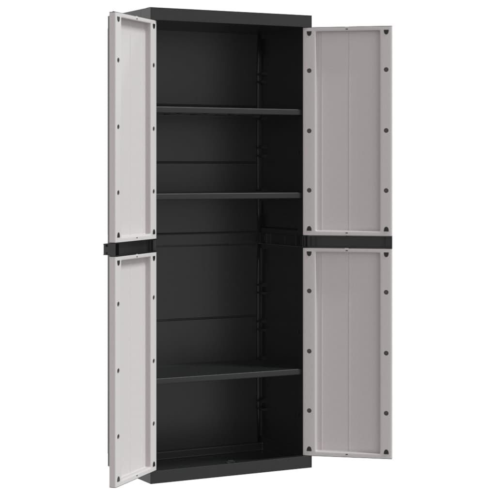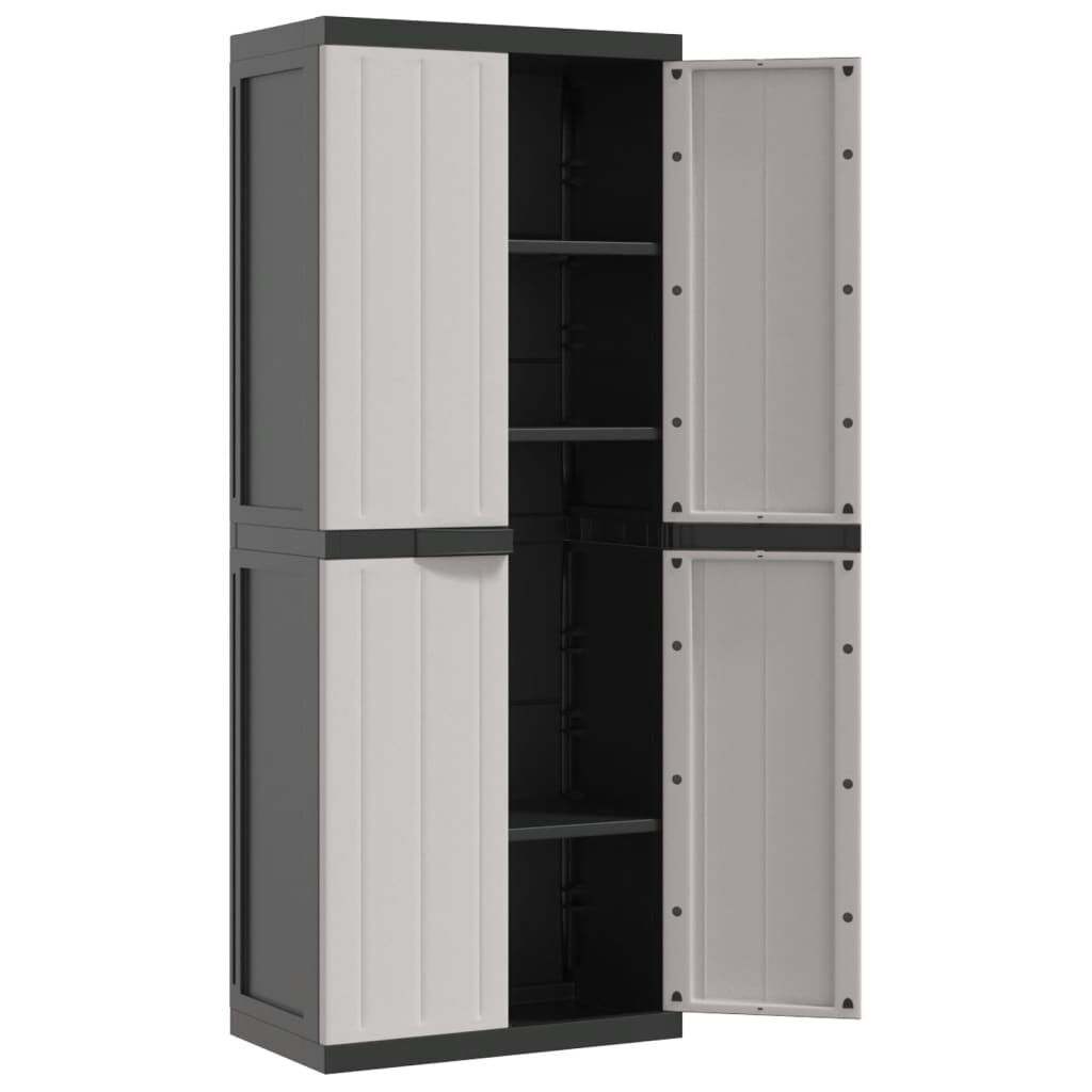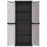 This outdoor storage cabinet is ideal for organising and storing household supplies, tools, or other items. Durable material: Polypropylene (PP) is a popular plastic that is also one of the most used materials in outdoor furniture. It's lightweight, tough, and resistant to impact. Also, this garden storage cupboard is weather-resistant and easy to maintain. Ample storage space: This utility cupboard provides ample storage space to help you sort out your garden supplies, tools, or other items. And the shelf can be adjusted to accommodate items of different sizes. Lockable: The garden storage furniture can be locked for added safety (lock not included). Compact design: With a compact design to make the most of limited space, this outdoor cupboard is perfect for gardens, balconies, and patios. Good to know:To make sure your outdoor furniture stays beautiful, we recommend protecting it with a waterproof cover. Warning: To prevent it being overturned, this product must be used with the provided wall attachment device.
