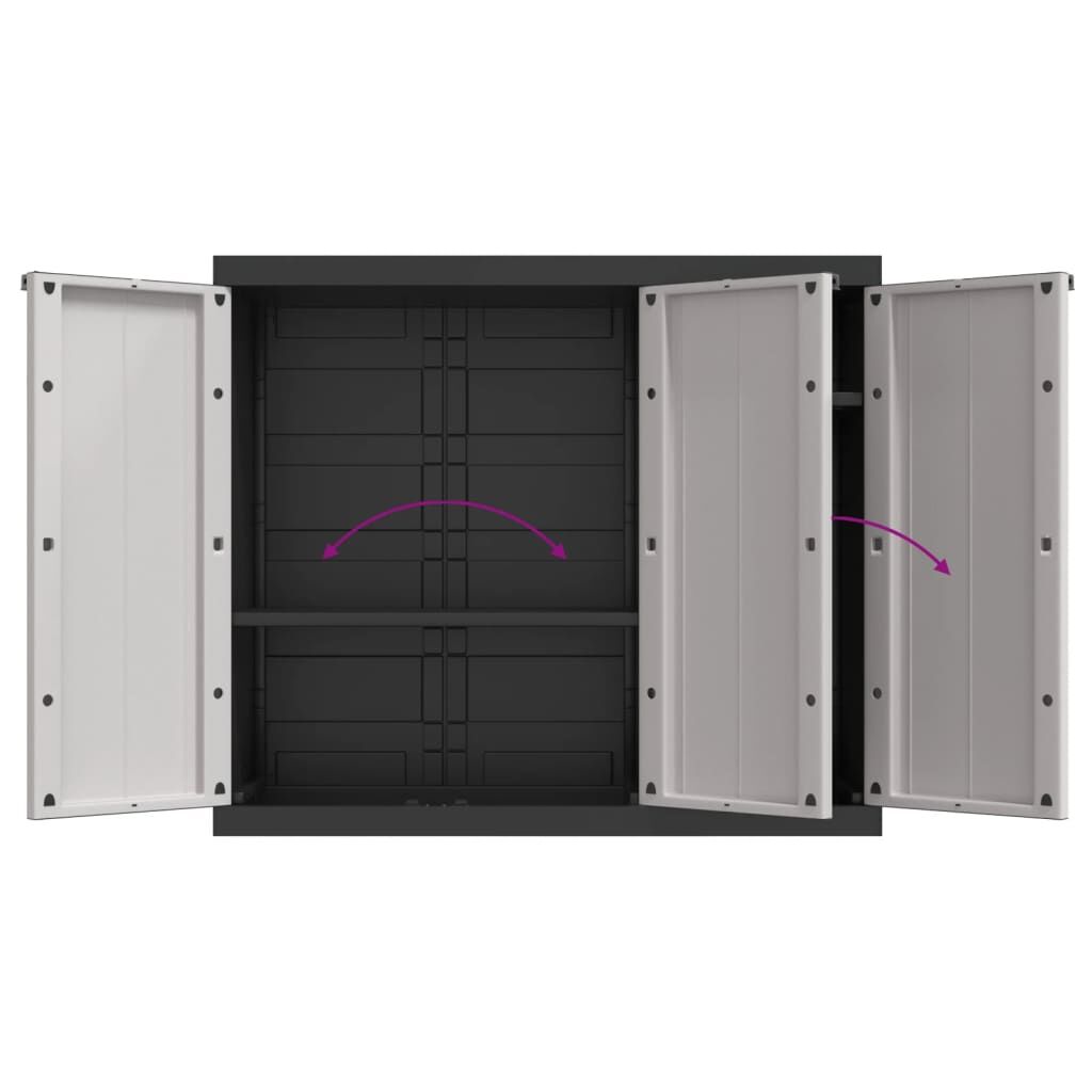 This outdoor storage cabinet is ideal for organising and storing household supplies, tools, or other items. Durable material: Polypropylene (PP) is a popular plastic that is also one of the most used materials in outdoor furniture. It's lightweight, tough, and resistant to impact. Also, this garden storage cupboard is weather-resistant and easy to maintain. Ample storage space: This utility cupboard provides ample storage space to help you sort out your garden supplies, tools, or other items. And the shelf can be adjusted to accommodate items of different sizes. Lockable: The garden storage furniture can be locked for added safety (lock not included). Compact design: With a compact design to make the most of limited space, this outdoor cupboard is perfect for gardens, balconies, and patios. Good to know:To make sure your outdoor furniture stays beautiful, we recommend protecting it with a waterproof cover. Warning: To prevent it being overturned, this product must be used with the provided wall attachment device.