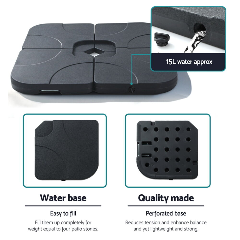 $86.47Secure your umbrella with our Instahut fillable base, designed for maximum stability. Easily add water for steadfast support, even on windy days. Relocating? The integrated hand grip ensures effortless mobility. Always check compatibility to ensure it fits your outdoor umbrella. Crafted for both strength and convenience, it's the essential anchor for your outdoor shade needs.