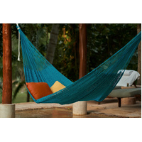 Outdoor cotton hammocks are built for heavy use or play in the great outdoors. They're pet and child friendly and are more weather resistant than our traditional cotton hammocks; the cotton string is 3 to 4 times thicker. Hanging these hammocks undercover will ensure a long life. If hung outside just unhook them when not in use, easy to do with our Tree Straps.