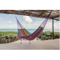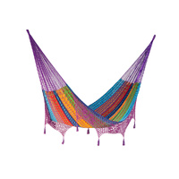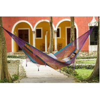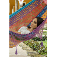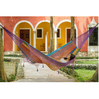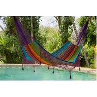 This gorgeous generous-sized hammock will quickly turn into your new favorite afternoon spot. Mayan Legacy artists hand-weave it from 100% cotton rope in elegant colours and add a beautiful crocheted fringe with tassels and floral designs for a glamorous finish. Just add a pair of straps or a frame and enjoy.