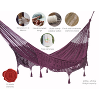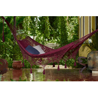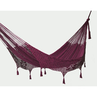 Outdoor undercover cotton Mayan Legacy hammock with hand crocheted tassels King Size Maroon