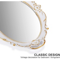 1 x Oval Antique White 25 x 38 cm Vintage Carved Hanging Wall Mirror for Bedroom and Living-Room