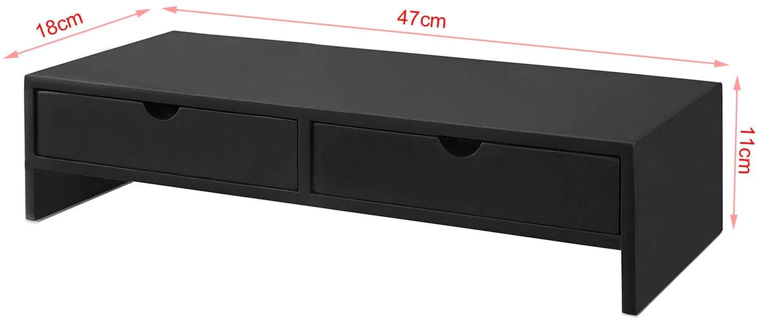 1 x Black Monitor Stand Desk Organizer with 2 Drawers