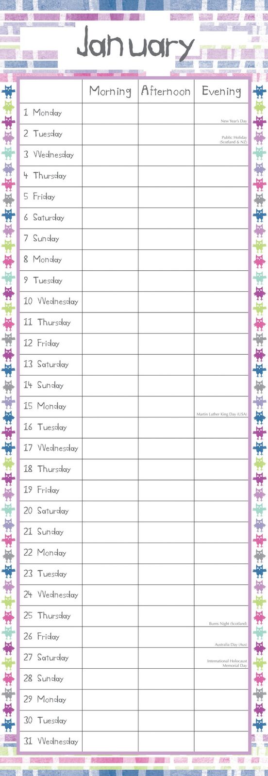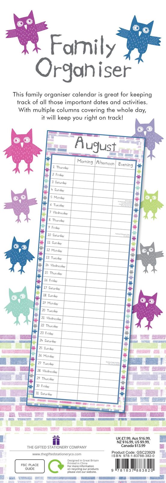 Owls - 2024 Slimline Slim Wall Calendar Hanging Planner New Year Gift