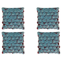Pack of 4 Covers Amelie Aqua Blue & Red 3D Texture Cushion Covers