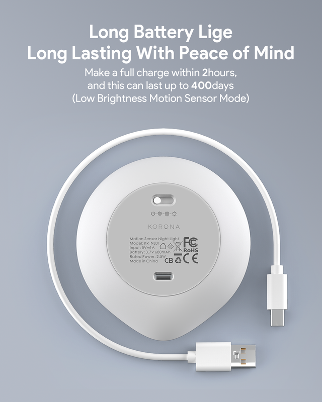 Precision-Engineered Smart Night Light: 400-Day Battery Ultra-Sensitive Motion Detection (White)